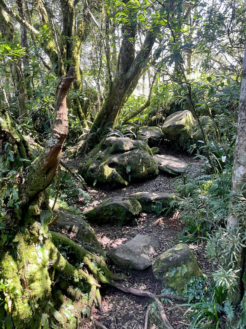 Further up the mountain from the main viewpoint there is a walking trail going through lush foliage; a part of the trail titled “The Rain Forest.”
